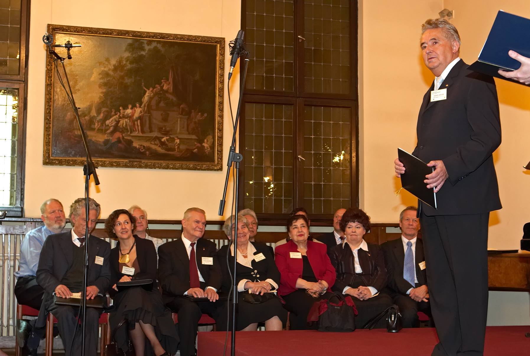 - Uroczysta inauguracja 11. Międzynarodowego Konkursu Lutniczego im. H. Wieniawskiego (2006). Dyrektor konkursu Andrzej Wituski wita jurorów oraz gości.