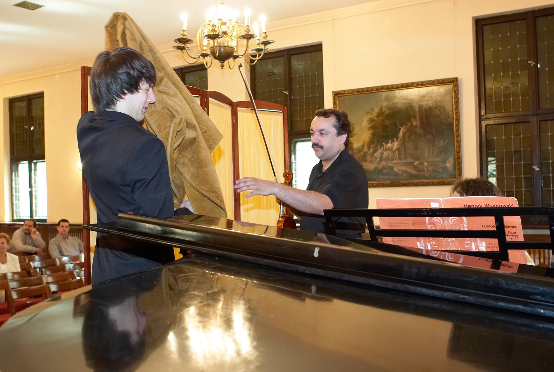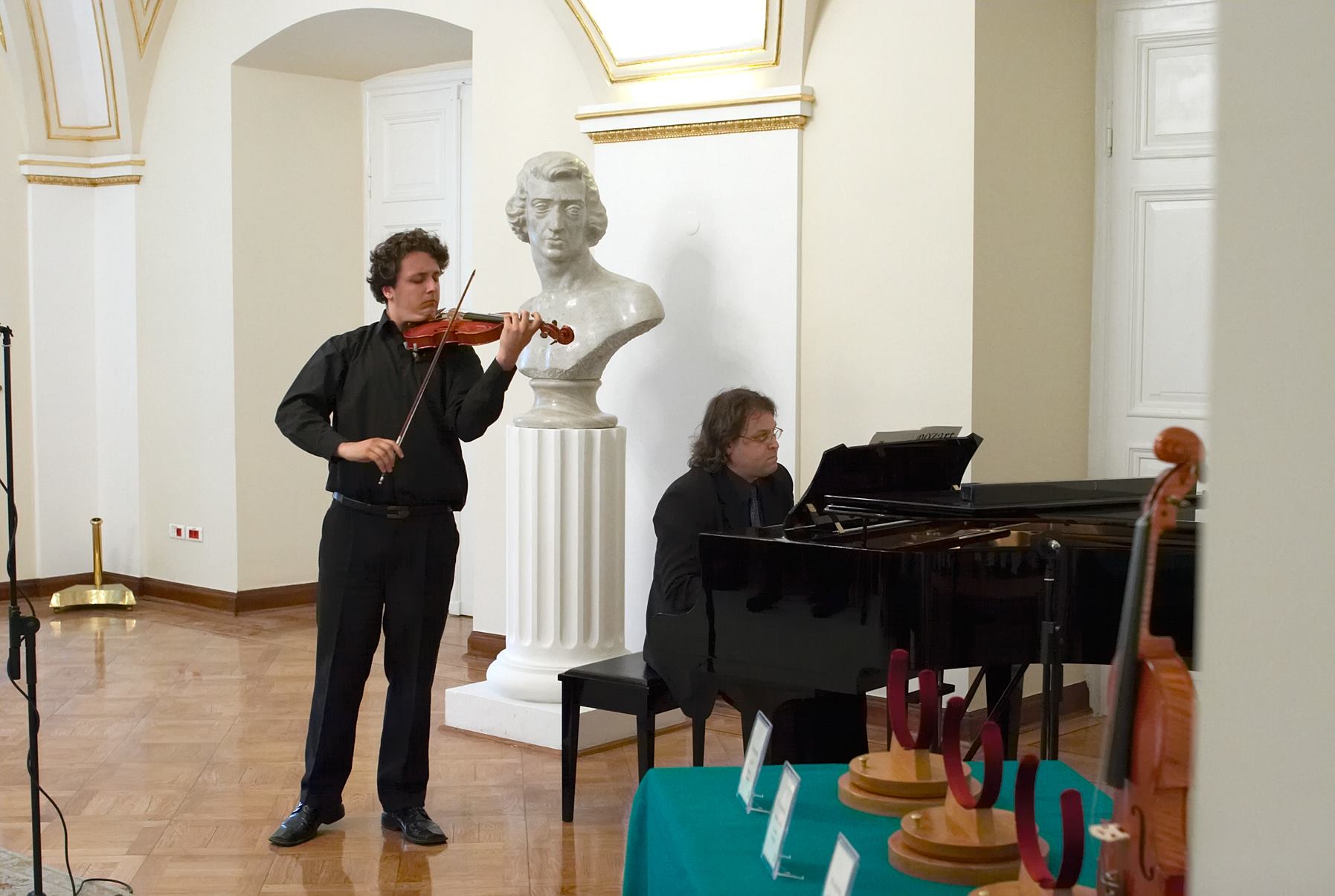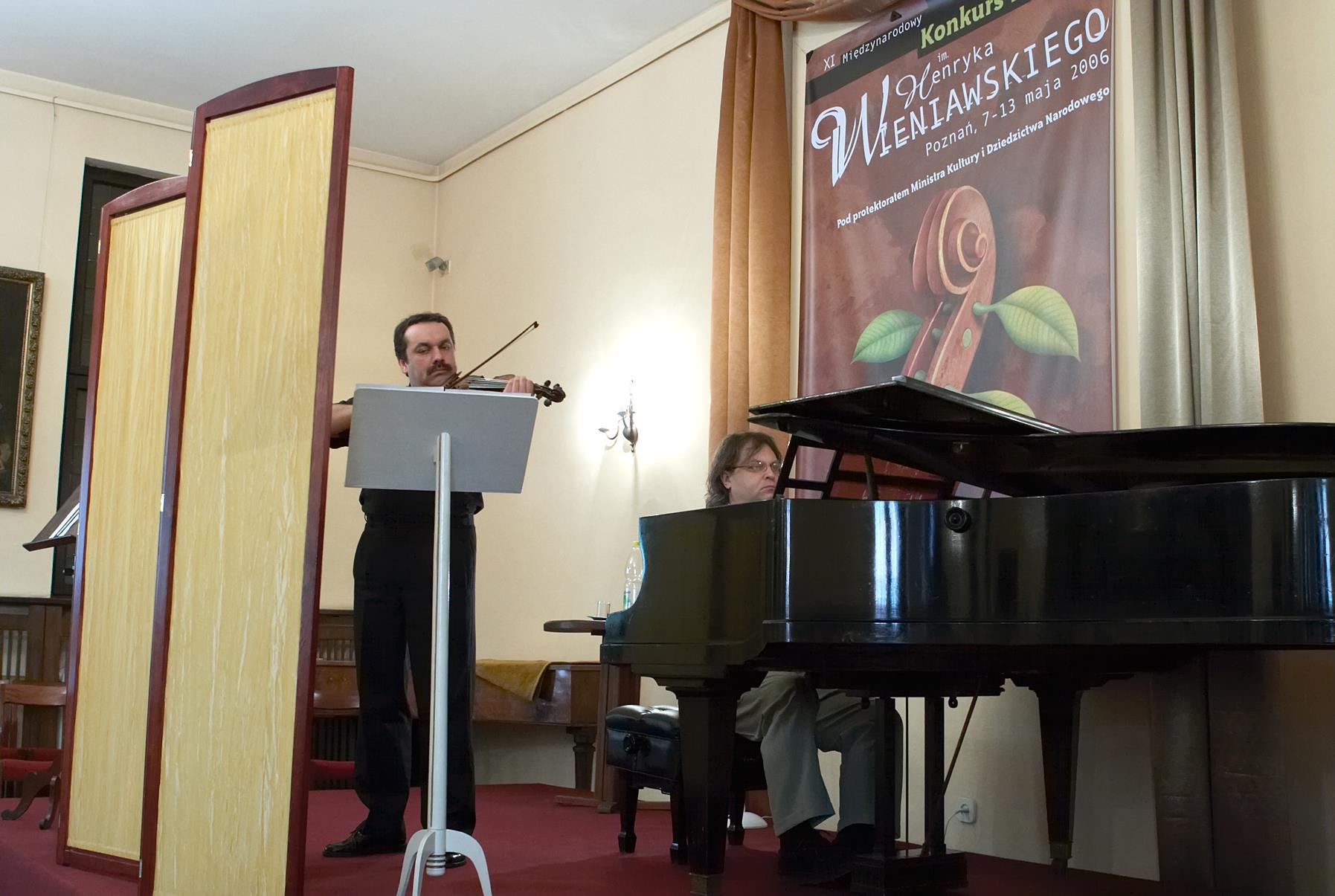 - 11. Międzynarodowy Konkurs Lutniczy im. H. Wieniawskiego (2006).Walory dźwiękowe instrumentu w warunkach kameralnych demonstruje zza parawanu skrzypek Bartosz Bryła z pianistą Arnoldem Dąbrowskim.