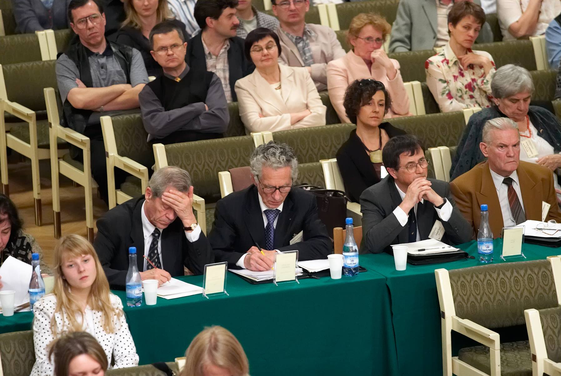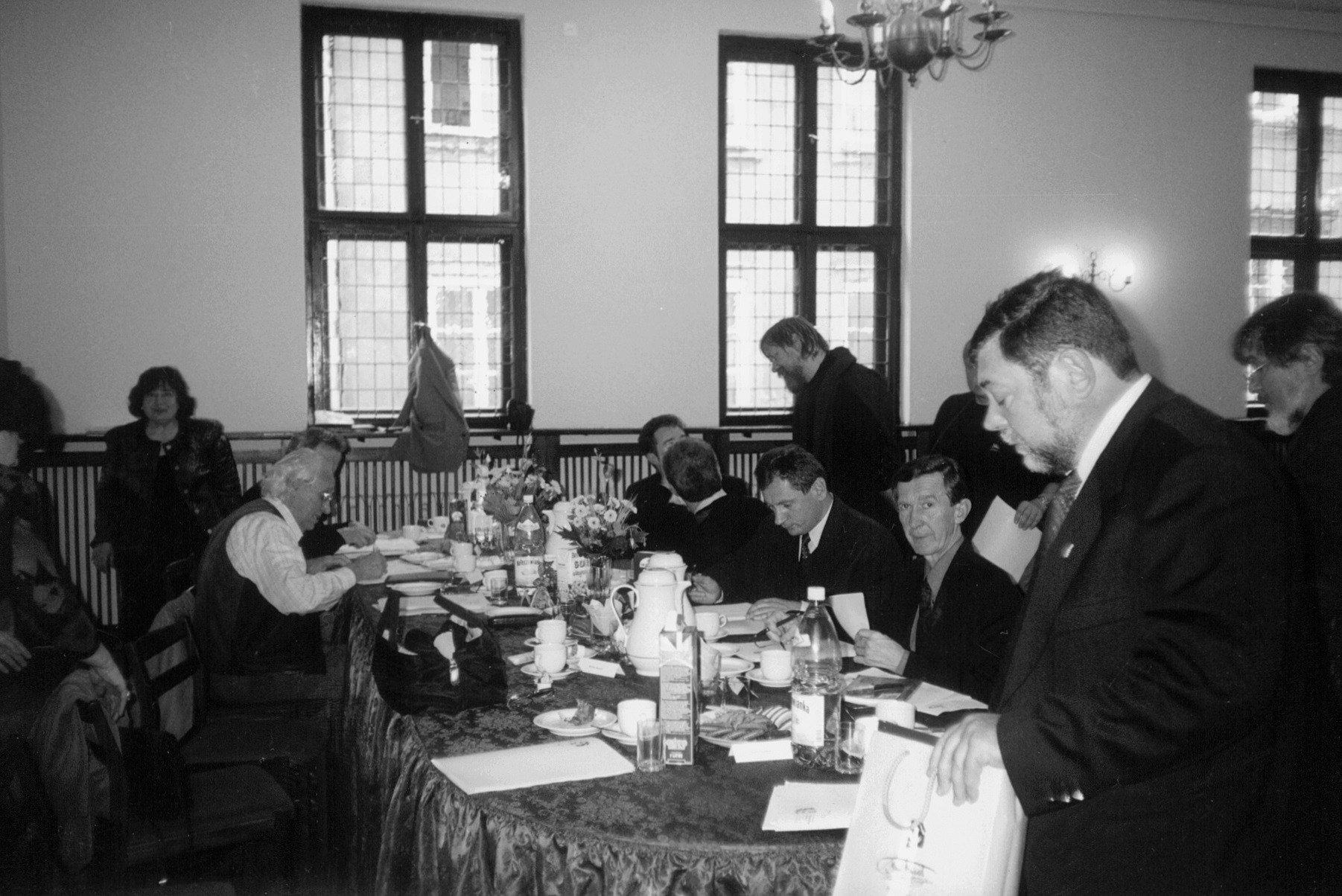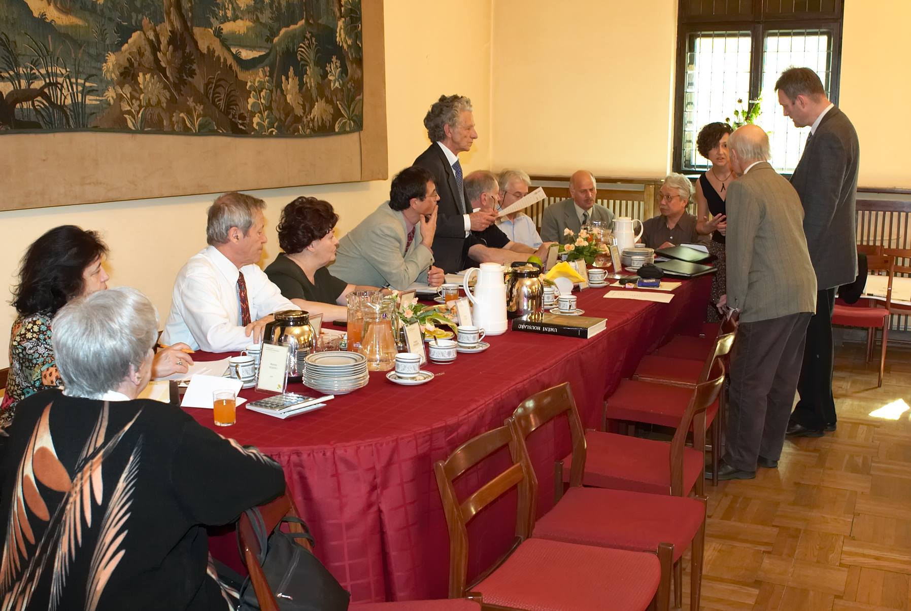 - 10. Międzynarodowy Konkurs Lutniczy im. H. Wieniawskiego (2001). Dyskusja jurorów w sali prac jury.