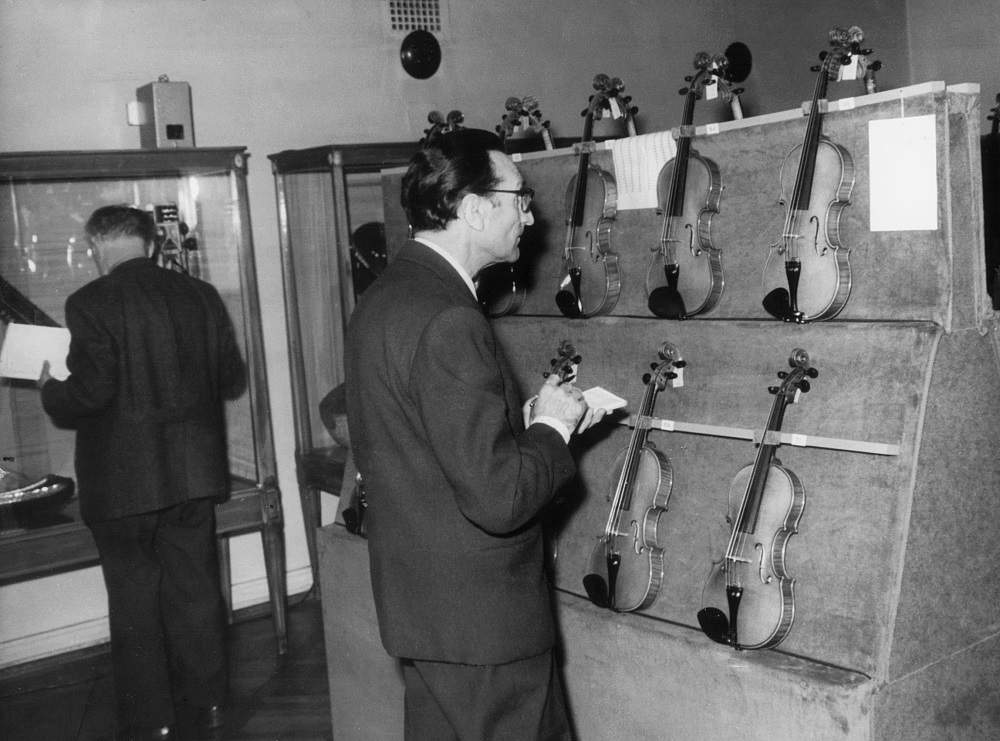 - 2. Międzynarodowy Konkurs Lutniczy im. H. Wieniawskiego (1962). Kolejna partia konkursowych skrzypiec, jeszcze nie rozpakowanych.