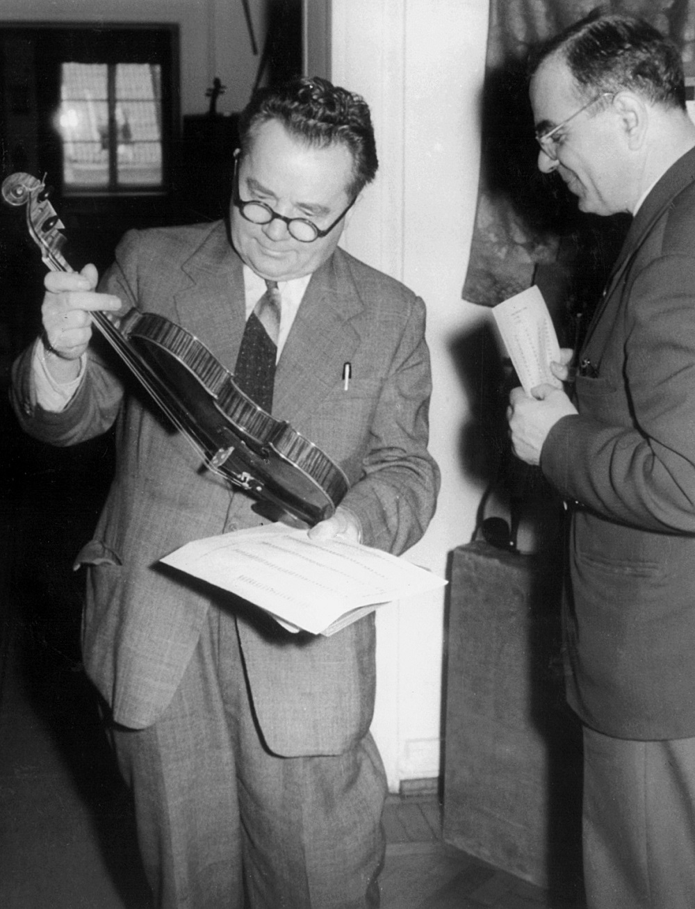 - 1. Międzynarodowy Konkurs Lutniczy im. H. Wieniawskiego (1957). Przewodniczący jury prof. Zdzisław Jahnke (z prawej) ogłasza wyniki 1. Międzynarodowego Konkursu Lutniczego im. H. Wieniawskiego. Nagrodzone instrumenty prezentuje Włodzimierz Kamiński.