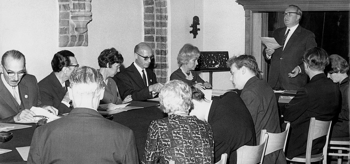- 3. Międzynarodowy Konkurs Lutniczy im. Henryka Wieniawskiego (1967). Posiedzenie jury w Sali Gotyckiej Muzeum Instrumentów Muzycznych; przemawia Tadeusz Wroński, przewodniczący jury.