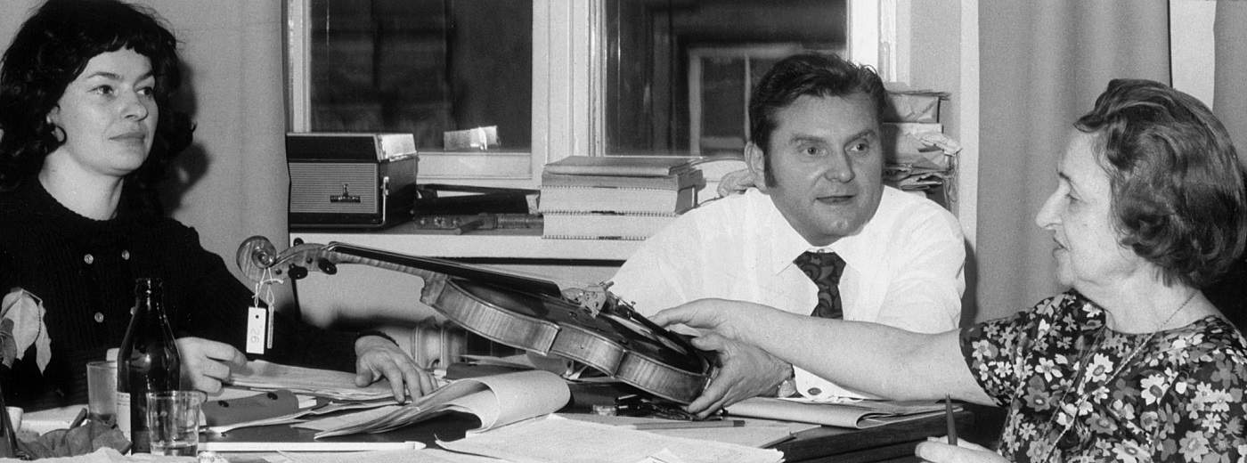 - 4. Międzynarodowy Konkurs Lutniczy im. H. Wieniawskiego (1972). Jurorzy przy pracy. Od lewej: Jadwiga Kaliszewska, Zenon Płoszaj i Irena Dubiska.