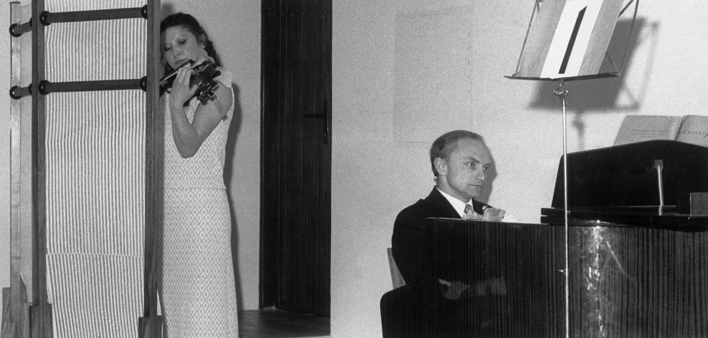 - 4. Międzynarodowy Konkurs Lutniczy im. Henryka Wieniawskiego (1972). Finałowe przesłuchania dźwiękowe konkursowych instrumentów. W warunkach kameralnych dokonali ich skrzypaczka Wanda Wierzbicka i pianista Jan Jański.
