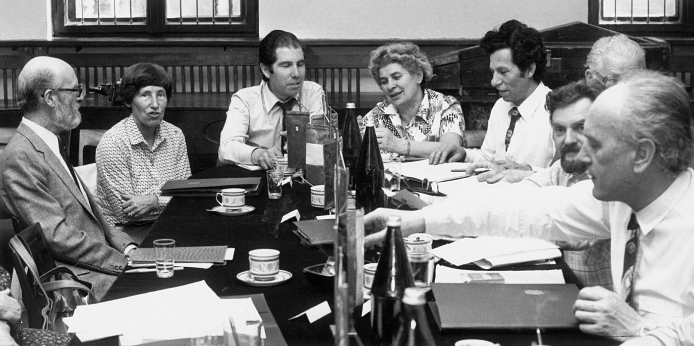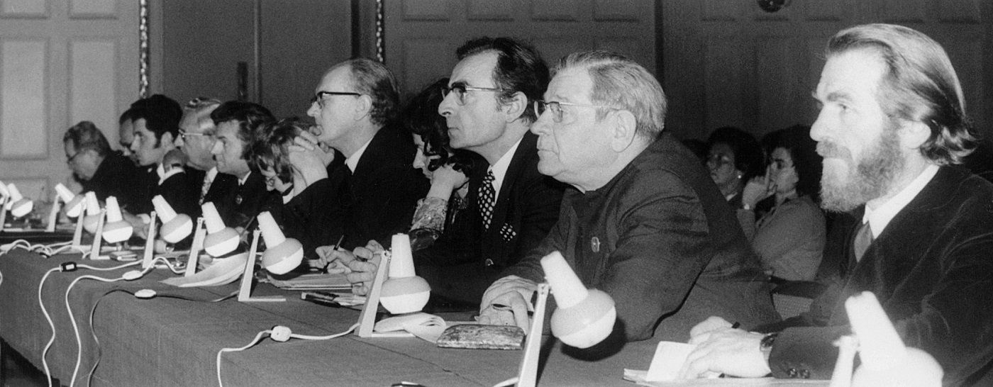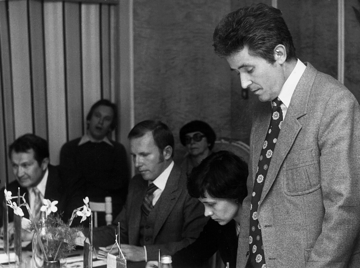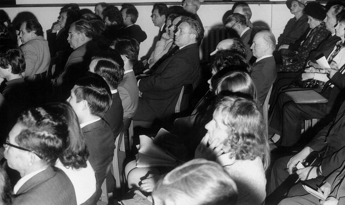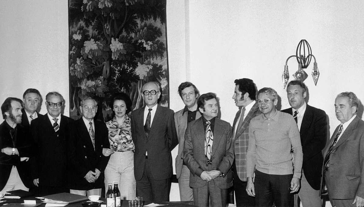 - 4. Międzynarodowy Konkurs Lutniczy im. Henryka Wieniawskiego (1972). Za stołem pośrodku Auli Uniwersyteckiej – jury w pełnym składzie.