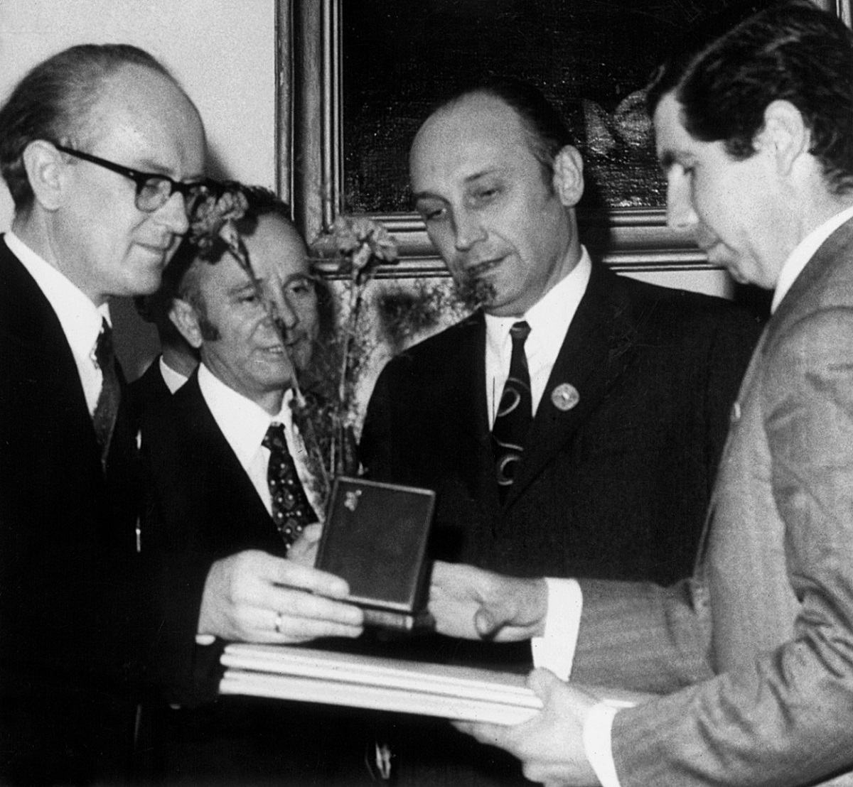 - 4. Międzynarodowy Konkurs Lutniczy im. Henryka Wieniawskiego (1972). Antonio Capela (pierwszy z prawej) – laureat III i jednej z równorzędnych IV nagród, przyjmuje dyplomy i medal.