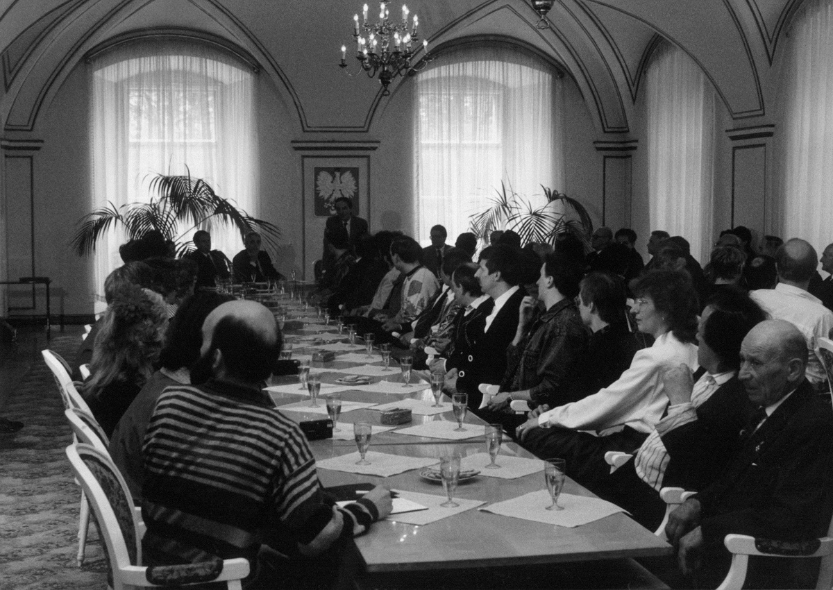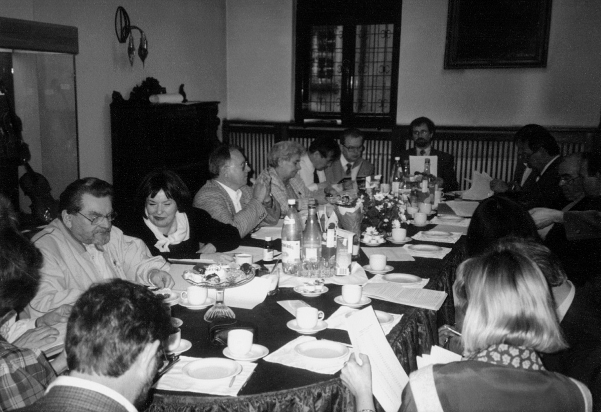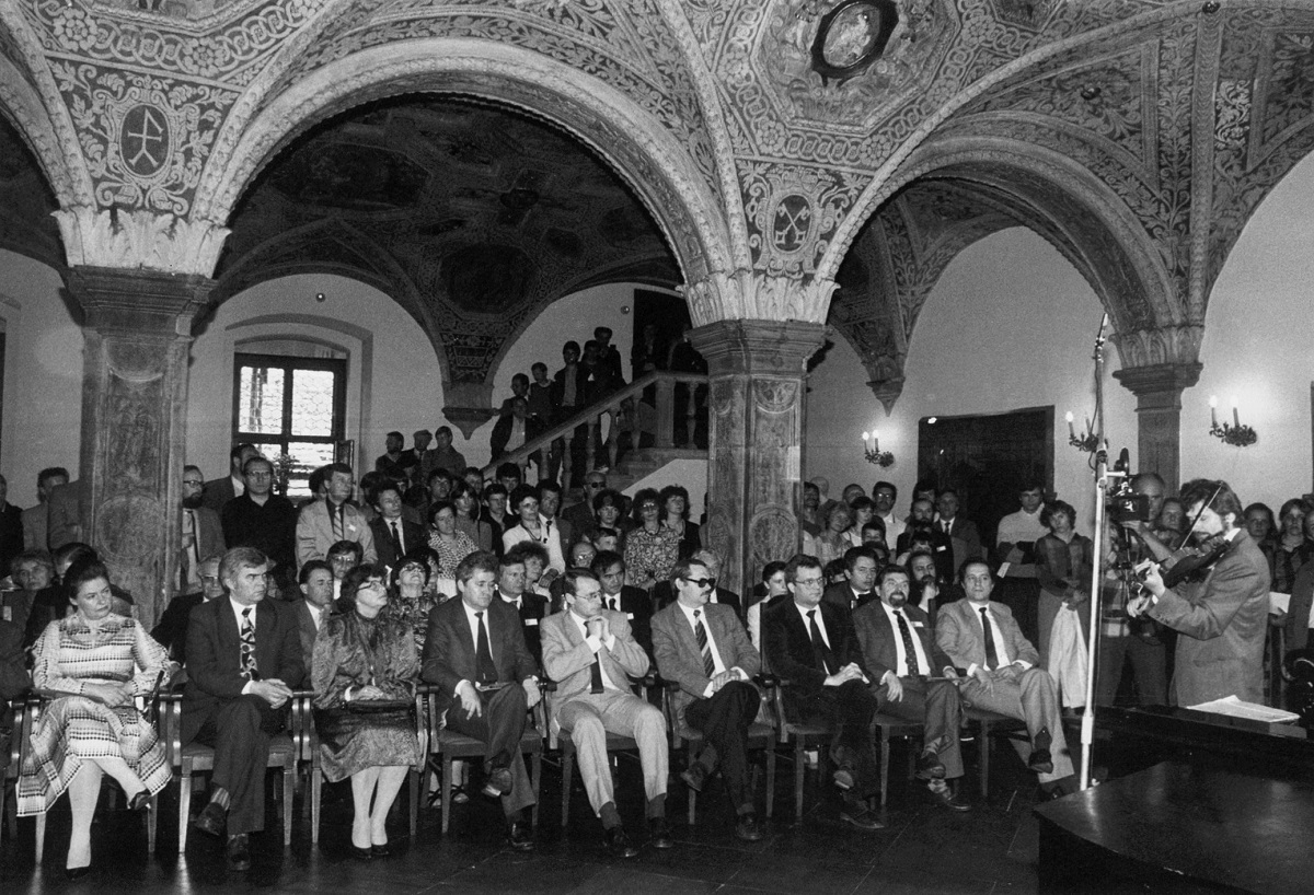 - 8. Międzynarodowy Konkurs Lutniczy im. H. Wieniawskiego (1991). Jury podczas obrad w sali Muzeum Instrumentów Muzycznych. Przewodniczył Włodzimierz Kamiński. Skład jury tworzyli: skrzypkowie Jadwiga Kaliszewska, Grigorij Fiejgin (ZSRR) i Zenon Płoszaj oraz lutnicy: Józef Bartoszek, Wolfgang Buennagel (Niemcy), Antonio Capela (Portugalia), Anatolij Koczergin (ZSRR), Gio Batta Morassi (Włochy), Soroku Murata — Japonia, Jan Pawlikowski, Eckart Richter (NRD) i Michał Więckowski.