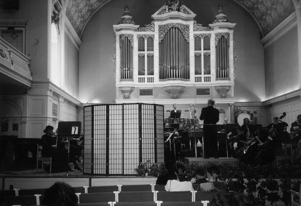 - 3. Międzynarodowy Konkurs Lutniczy im. Henryka Wieniawskiego (1967). W III etapie Konkursu, zakwalifikowane do finału skrzypce, poddano publicznym próbom dźwiękowym. Jadwiga Kaliszewska przygotowuje się do wykonania za parawanem, równego dla wszystkich „testu dźwiękowego”, odpowiedniego dla warunków kameralnych.