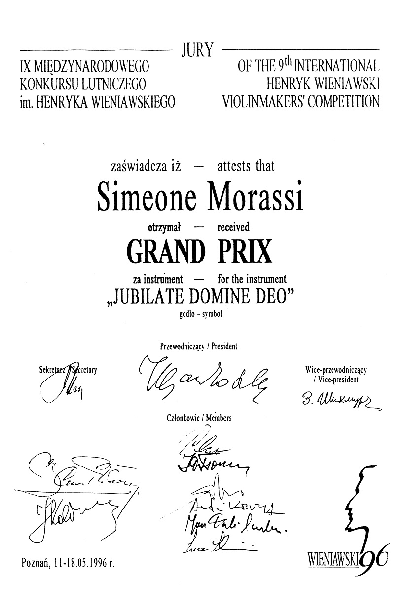 - 7. Międzynarodowy Konkurs Lutniczy im. H. Wieniawskiego (1986). Lorenzo Marchi (Włochy), II nagroda.