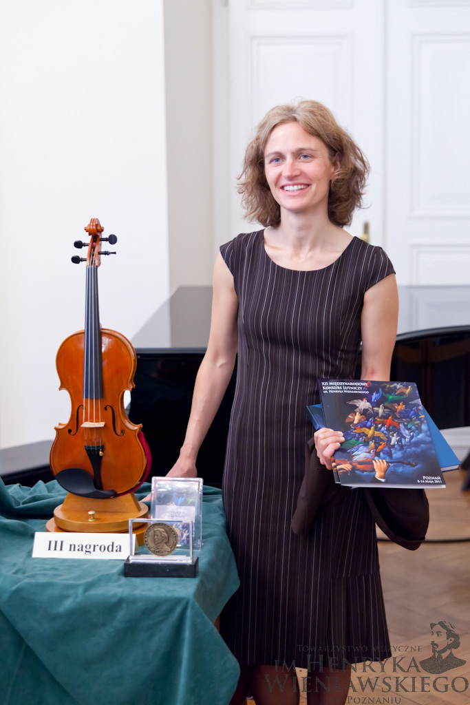 - 12. Międzynarodowy Konkurs Lutniczy im. H. Wieniawskiego. Ulrike Dederer, obok zbudowanych przez nią a nagrodzonych III nagrodą skrzypiec.