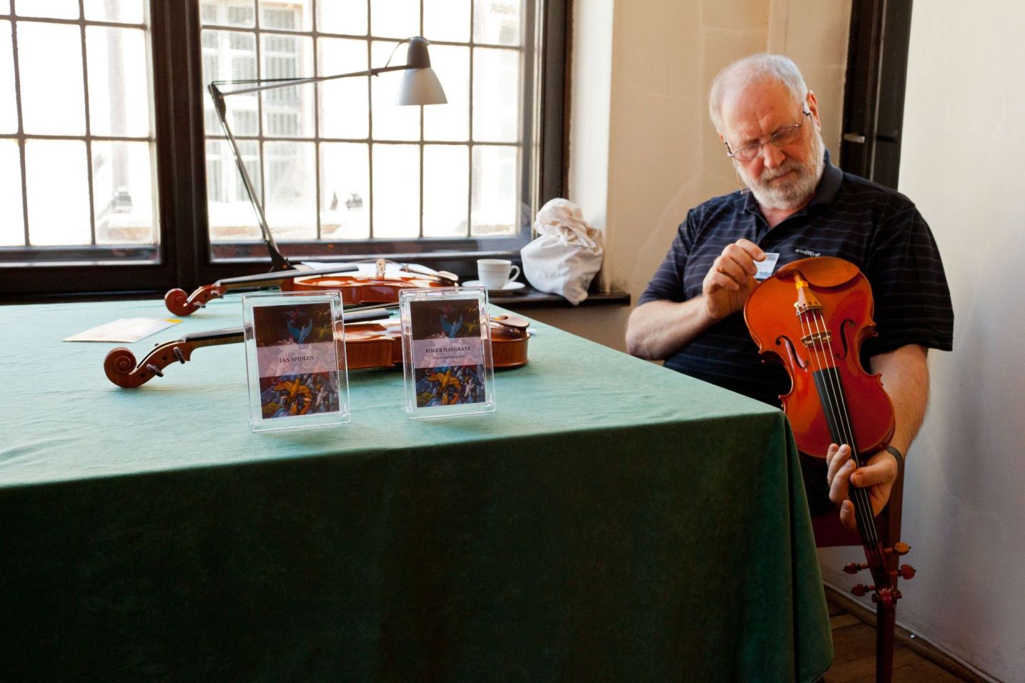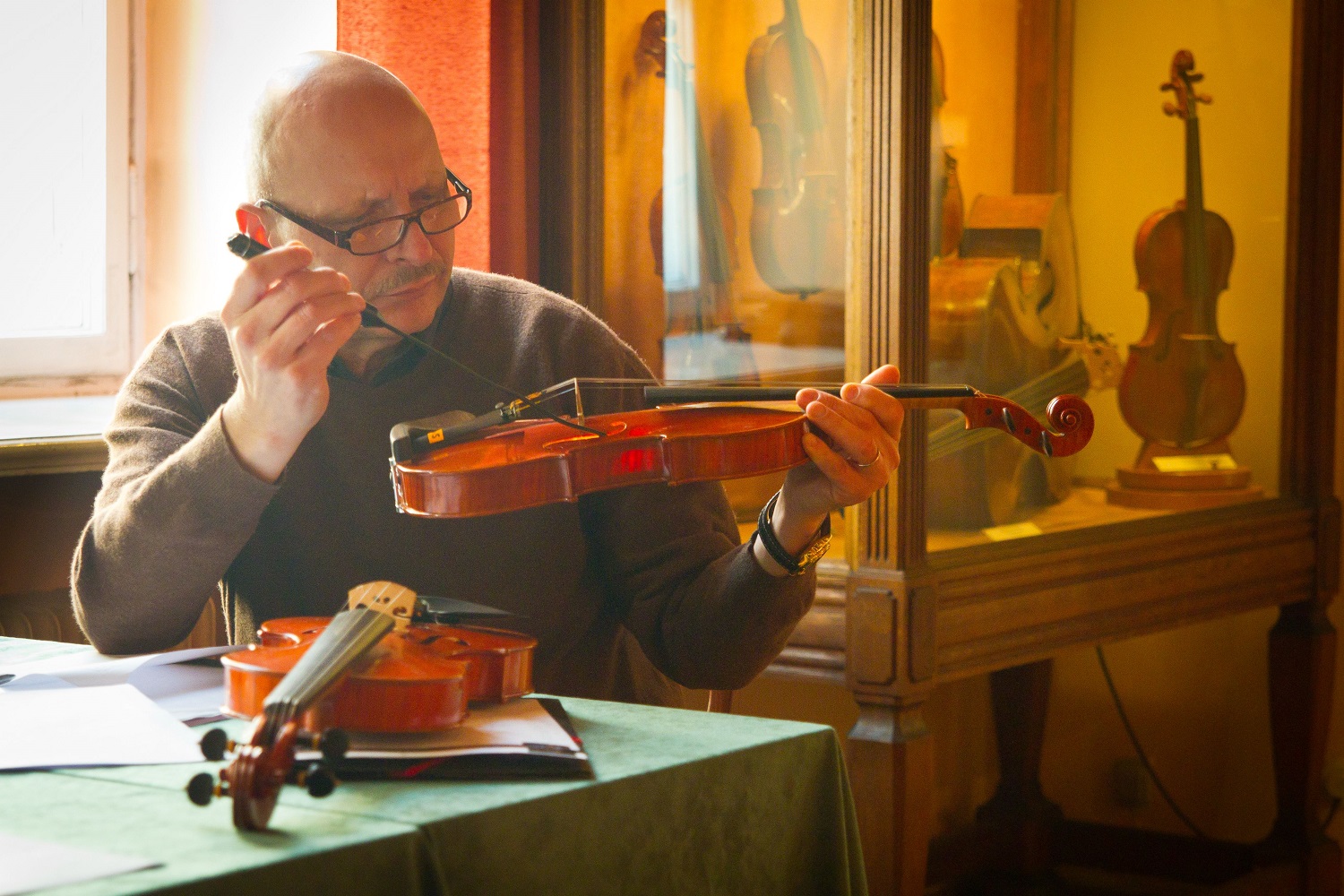 - Juror podczas pracy nad oceną skrzypiec. 12. Międzynarodowy Konkurs Lutniczy im. Henryka Wieniawskiego, 2011.
