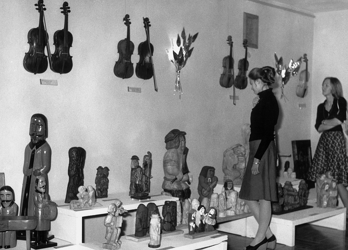 - 5. Międzynarodowy Konkurs Lutniczy im. H. Wieniawskiego (1977). Z okazji Konkursu, Towarzystwo Muzyczne im. H. Wieniawskiego i Muzeum Narodowe w Poznaniu, zorganizowały ogólnopolski konkurs na ludowe instrumenty muzyczne i rzeźbę ludową o tematyce muzycznej. Na zdjęciu: fragment wystawy pokonkursowej.