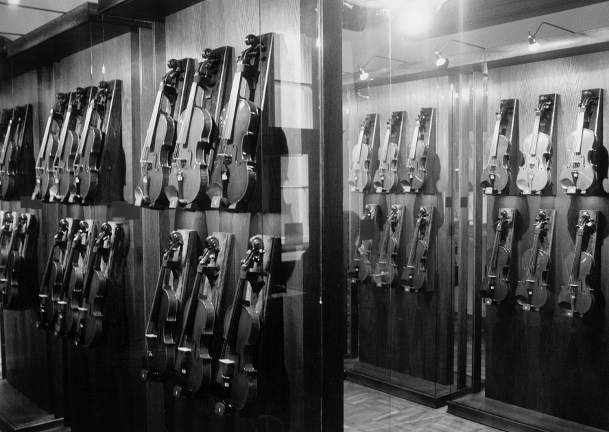 - 2. Międzynarodowy Konkurs Lutniczy im. H. Wieniawskiego (1962). Fragment pokonkursowej wystawy instrumentów.