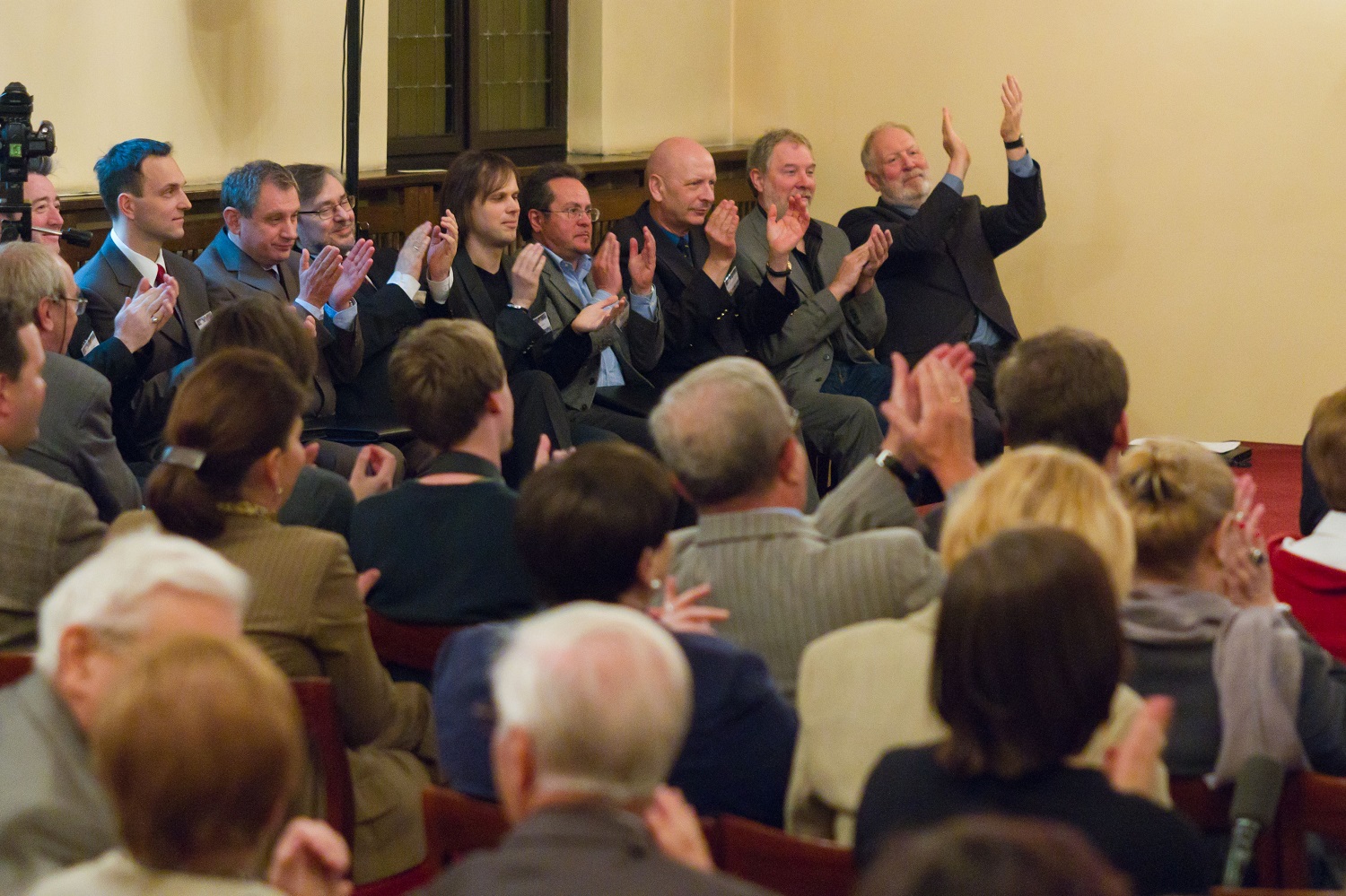 - 12. Międzynarodowy Konkurs Lutniczy im. H. Wieniawskiego (2011). Siedzą od prawej jurorzy: Przewodniczący Roger Hargrave, Joseph Grubaugh, Roland Baumgartner, Primo Pistoni, Dima Tkachenko, Roman Lasocki, Wojciech Łukasz, Norbert Kijanka, Patrick Robin.