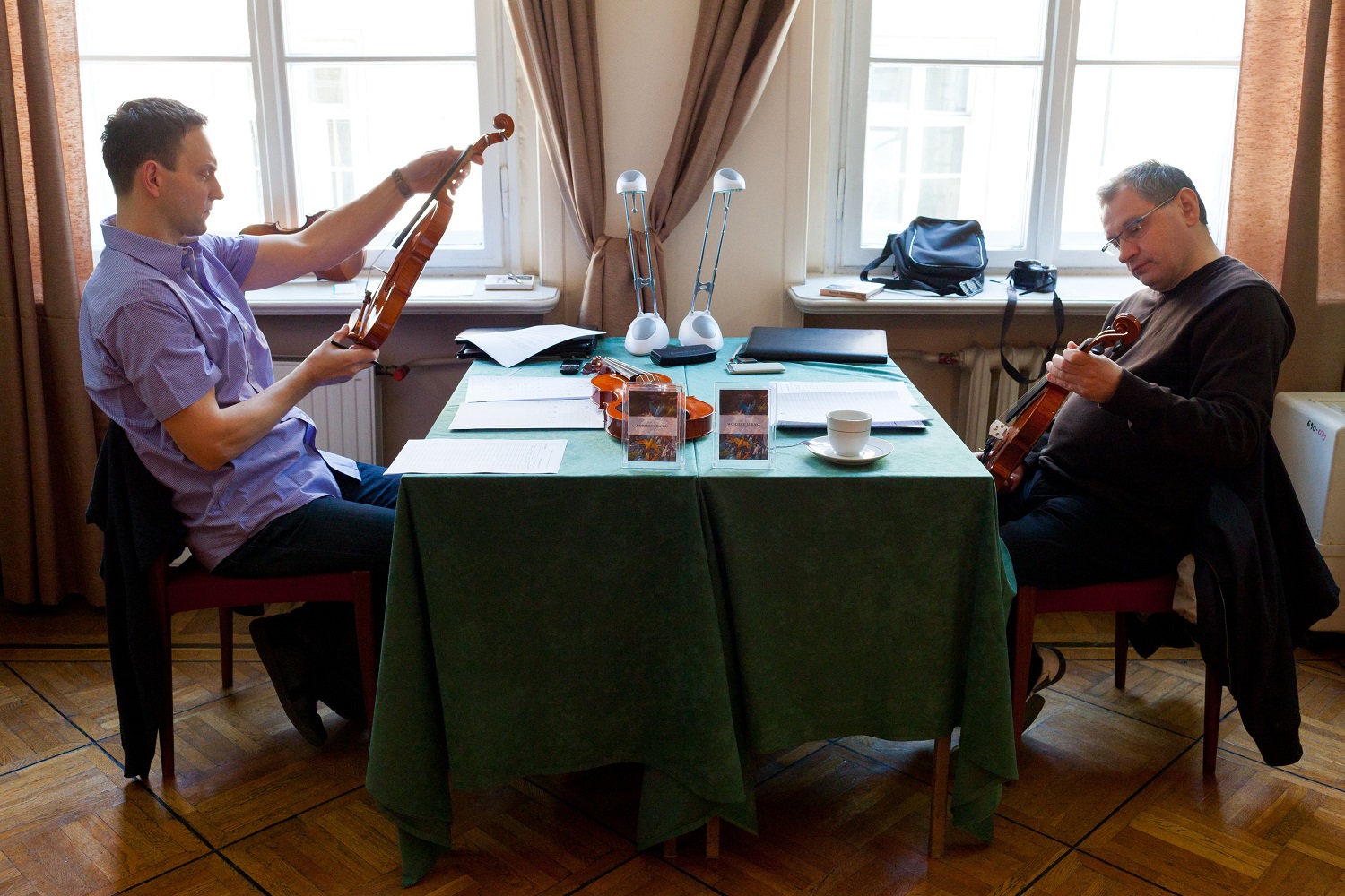 - 12. Międzynarodowy Konkurs Lutniczy im. H. Wieniawskiego (2011). Jurorzy przy pracy: Norbert Kijanka i Wojciech Łukasz.