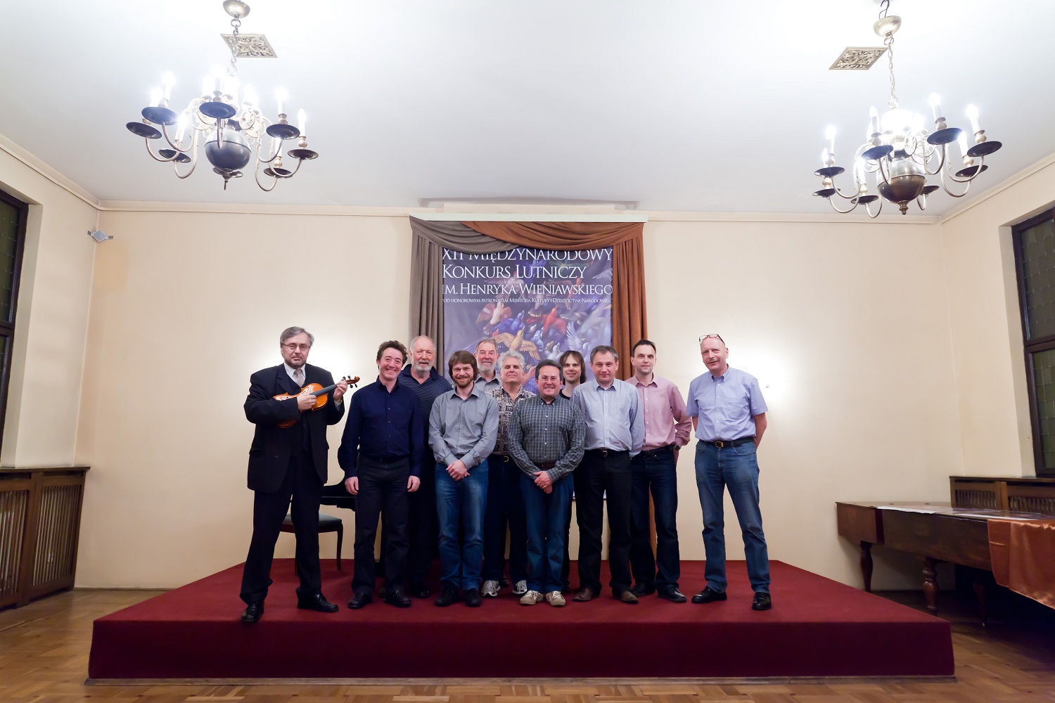 - 12. Międzynarodowy Konkurs Lutniczy im. H. Wieniawskiego (2011). Jury konkursu w pełnym składzie. Od lewej Roman Lasocki, Patrick Robin, Roger Hargrave, Jan Spidlen, Joseph Grubaugh, Herbert Greenberg, Primo Pistoni, Dima Tkachenko, Wojciech Łukasz, Norbert Kijanka i Roland Baumgartner.